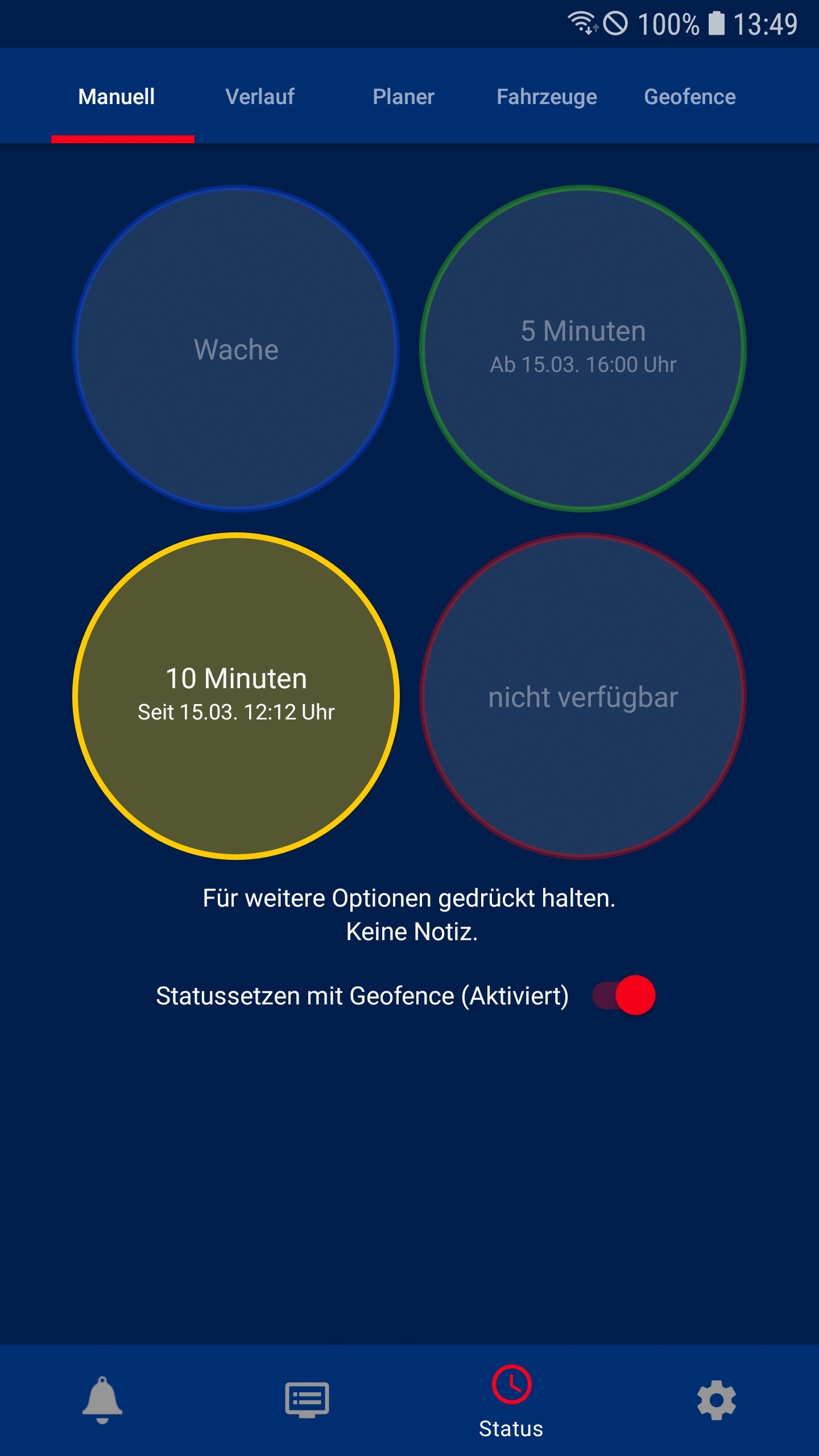 Über den Statusgeber können die entsprechenden Status des Nutzers bequem übermittelt werden. Hierzu öffnen Sie einfach in der App das Fenster Status, indem Sie unten im Menü auf das Symbol tippen und schon sind Sie im Statusgeber.