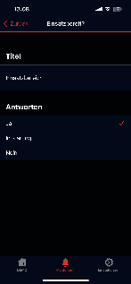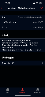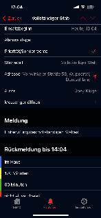 Wird die Alarmierung per Pushbenachrichtigung empfangen können die Grunddaten des Einsatzes gelesen sowie eine Einsatzrückmeldung gegeben werden.