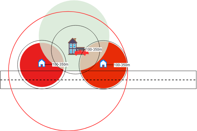 Deswegen kann es durchaus sinnvoll sein, einen getrennten Radius für Betreten und Verlassen des Geofence zu definieren. Dafür müssen 2 getrennte Geofence jeweils mit nur einer Aktion hinterlegt werden. Dies ist insbesondere bei jedem Ort zu empfehlen, bei dem der Aufenthalt in einem Gebäude (Wohnung, Gerätehaus) einem bestimmten Status zugeordnet werden soll. Auf dem Weg dahin befindet man sich unter freiem Himmel und das Gerät wird aktiv benutzt und bewegt, die Position ist daher sehr genau.